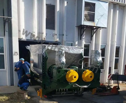 7000升捏合機(jī)出口到歐洲的卸貨現(xiàn)場
